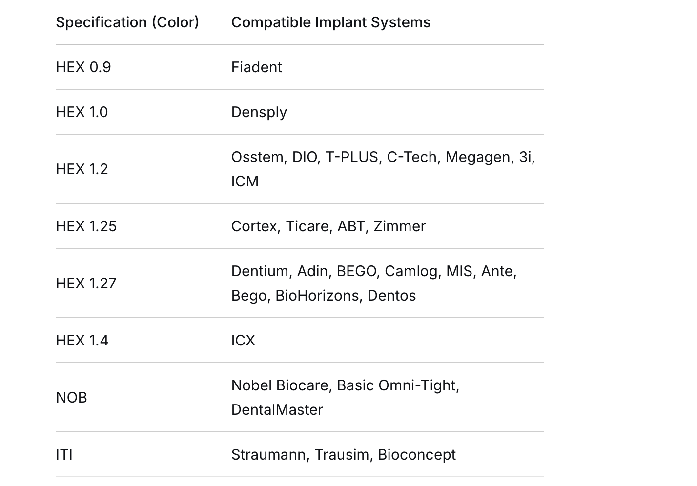 | Torque Range | 10–50 Ncm (wrench-dependent) |