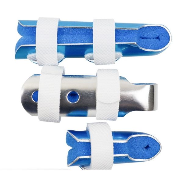 Finger Splint/Finger Holder is a medical-grade immobilization device designed to stabilize and protect injured fingers. Shaped like a clip, Finger Splint is constructed from a malleable aluminum alloy sheet, a soft sponge inner lining, and an adjustable adhesive strap. Its primary function is to provide secure and comfortable fixation for finger joints following injuries, allowing for natural healing while maintaining breathability and lightweight comfort.